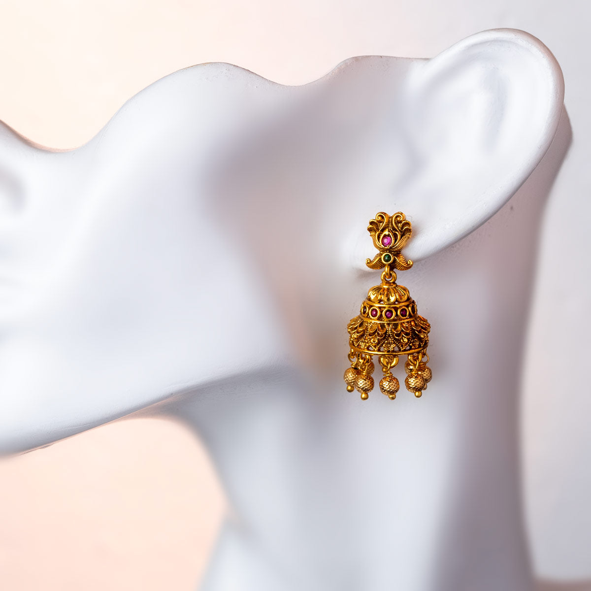 Style Tip: Pair these jhumkas with a classic Kanjeevaram saree or an anarkali suit to amplify your ethnic charm.