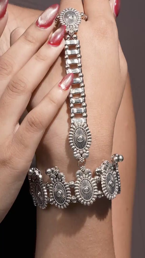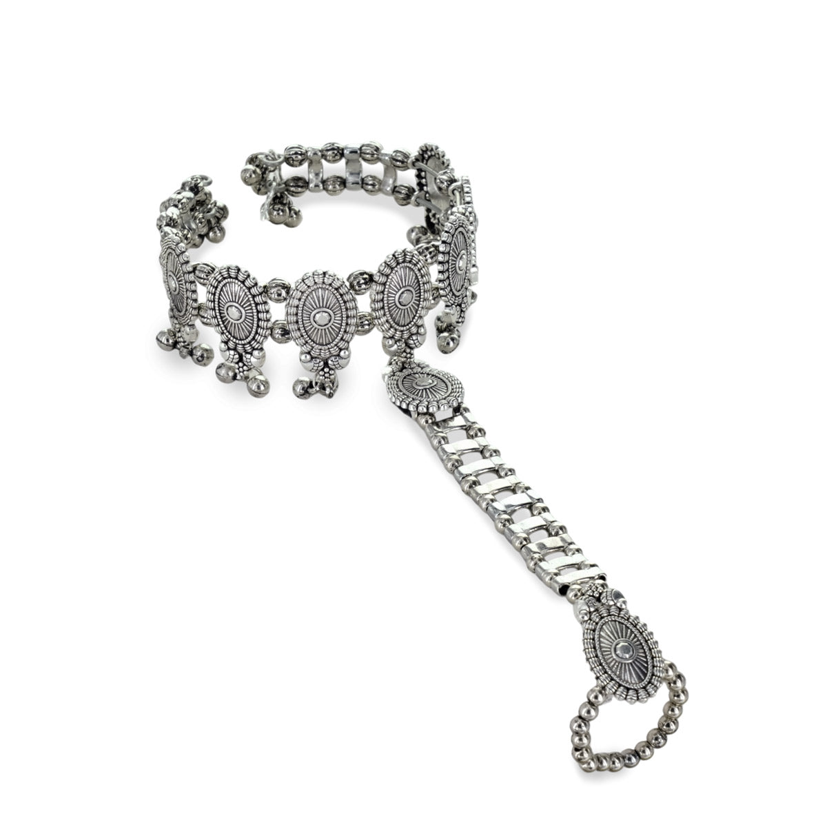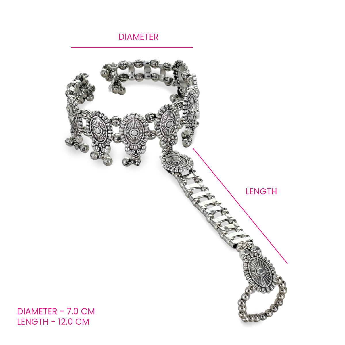 Embrace timeless elegance with the Hathpan Kada by Utsaav. Combining the grace of a bangle with the delicate charm of a hand chain, this piece is a celebration of artistry and sophistication, making it a standout accessory for special occasions.