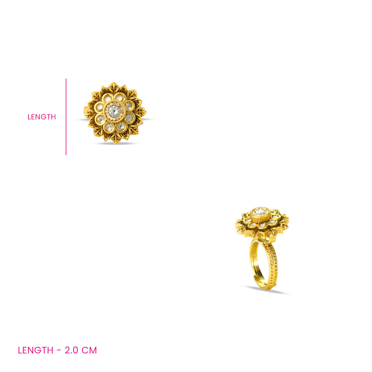 Style Tip: Style with silk sarees, lehengas, or contemporary ethnic outfits to let this statement ring stand out beautifully.
