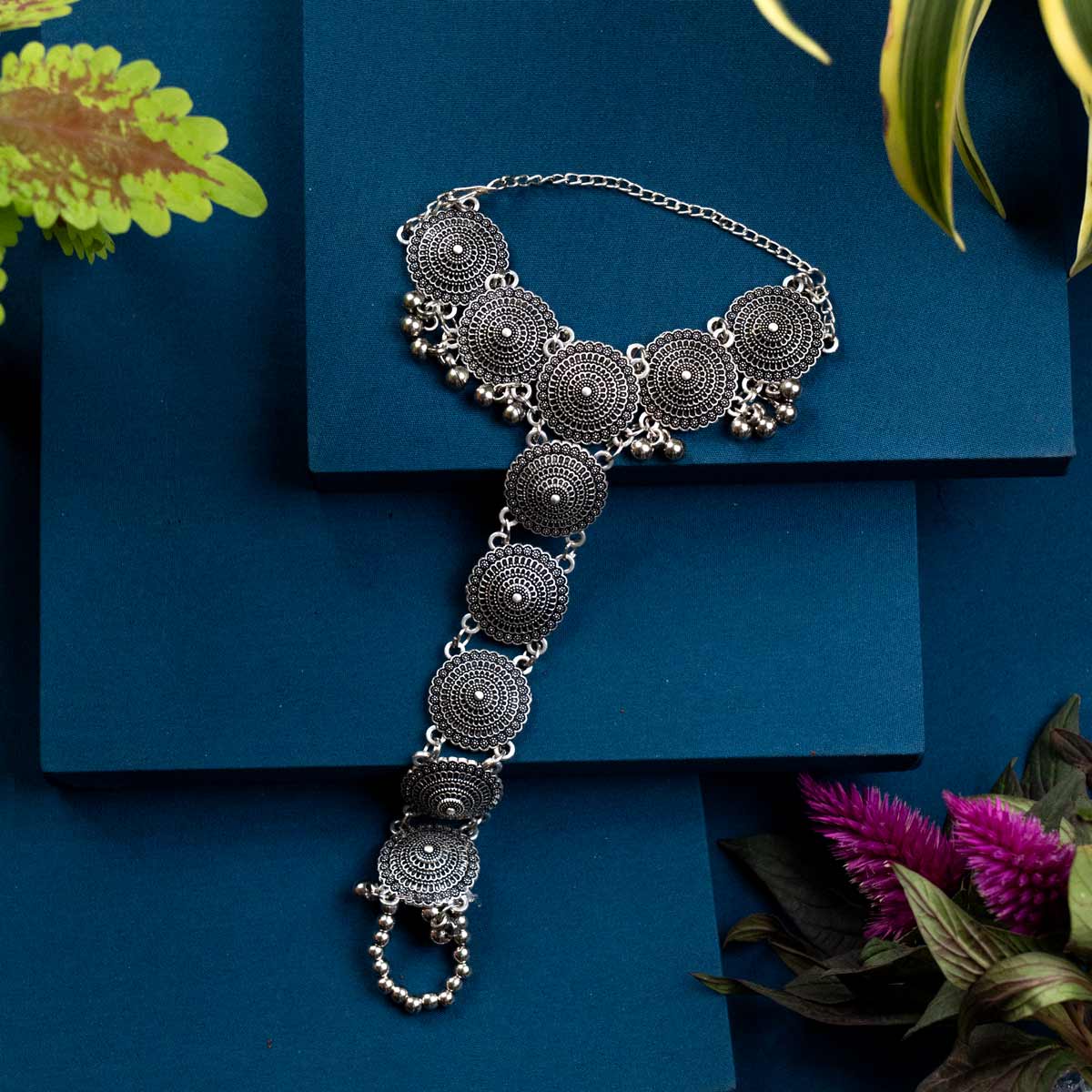 Embrace timeless elegance with the Hathpan Kada by Utsaav. Combining the grace of a bangle with the delicate charm of a hand chain, this piece is a celebration of artistry and sophistication, making it a standout accessory for special occasions.