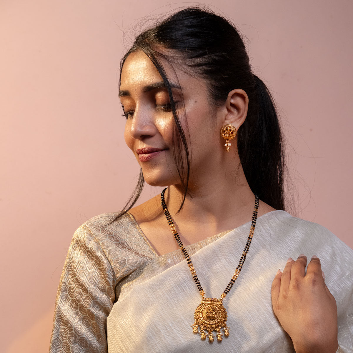 The Utsaav way - Sri Lakshmi Temple Mangalsutra Set is inspired by sacred temple artistry, handcrafted to invoke blessings of prosperity, protection, and marital harmony.